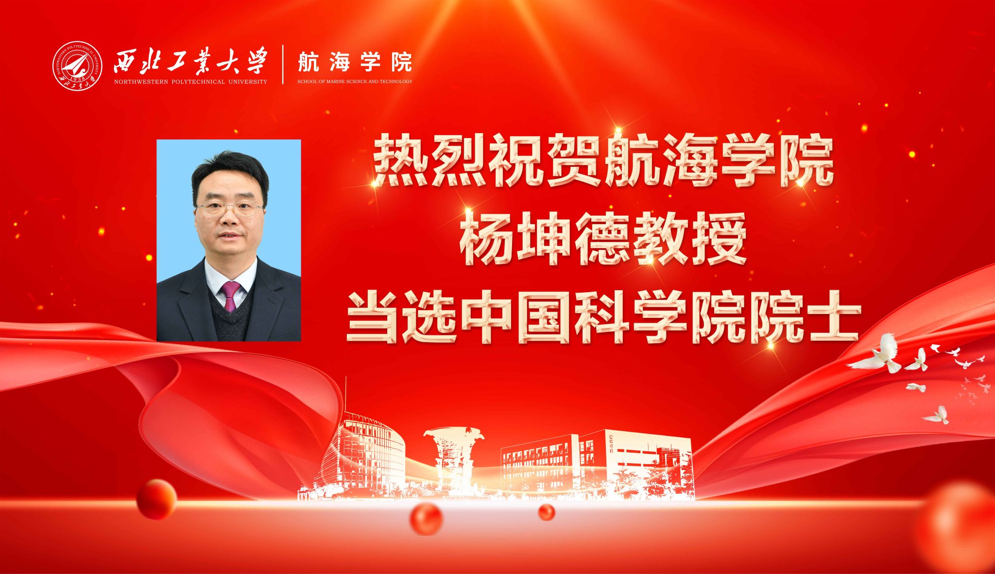 祝贺!西工大买球体育官方网站杨坤德教授当选中国科学院院士!
