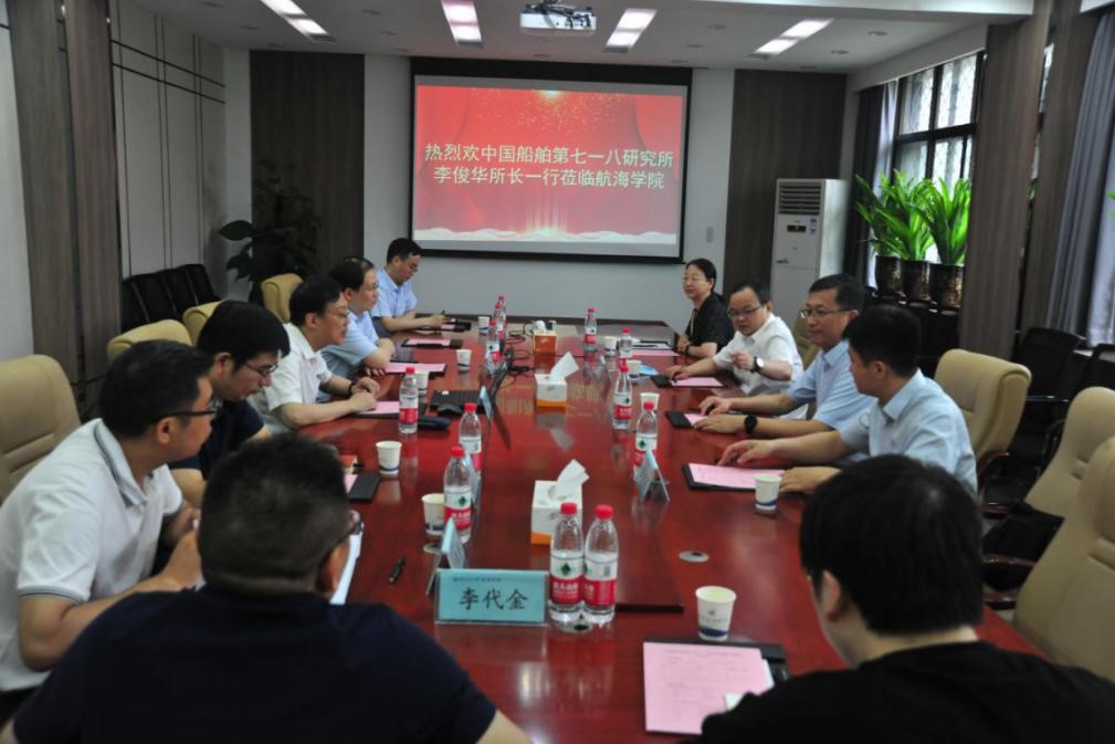 6月7日上午,中国船舶集团有限公司第七一八研究所所长李俊华、纪委书记高天柱、副所长祝维燕、军工部主任刘志明等来买球体育官方网站进行调研交流,买球体育官方网站党委常委、副校长杨益新、买球体育官方网站院长潘光、副院长杨坤德、副院长曾向阳、党委副书记王银涛、副教授李代金等参加了交流。
