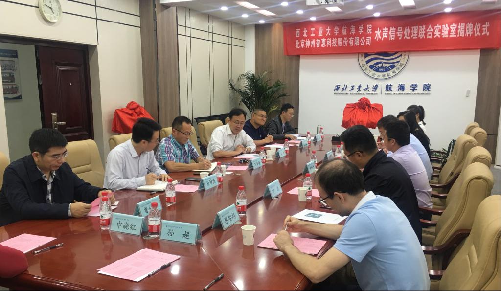 9月24日,买球体育官方网站与神州普惠、武汉普惠共建联合实验室揭牌仪式在学院201会议室隆重举行。北京神州普惠科技股份有限公司总经理张海兵、武汉普惠海洋光电技术有限公司总经理申和平一行,买球体育官方网站院长潘光、党委副书记孙华强(主持工作),副院长杨坤德、崔荣鑫、曾向阳、杨亮及相关教师代表参加了会议,会议由杨坤德副院长主持。