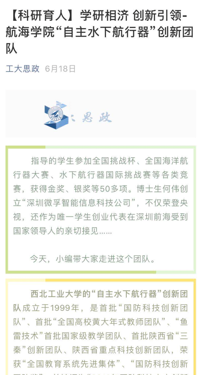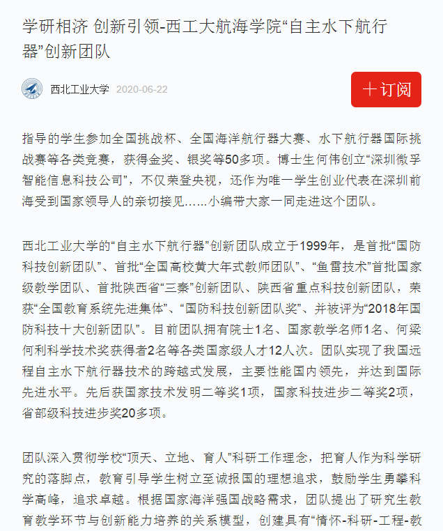 买球体育官方网站“自主水下航行器”创新团队成立于1999年,长期从事新型水中兵器、水下航行器基础理论和核心技术攻关、工程型号研制以及人才培养工作。该团队是首批“国防科技创新团队”、首批“全国高校黄大年式教师团队”、“鱼雷技术”首批国家级教学团队、首批陕西省“三秦”创新团队、陕西省重点科技创新团队,荣获“全国教育系统先进集体”、“国防科技创新团队奖”、并被评为“2018年国防科技十大创新团队”。