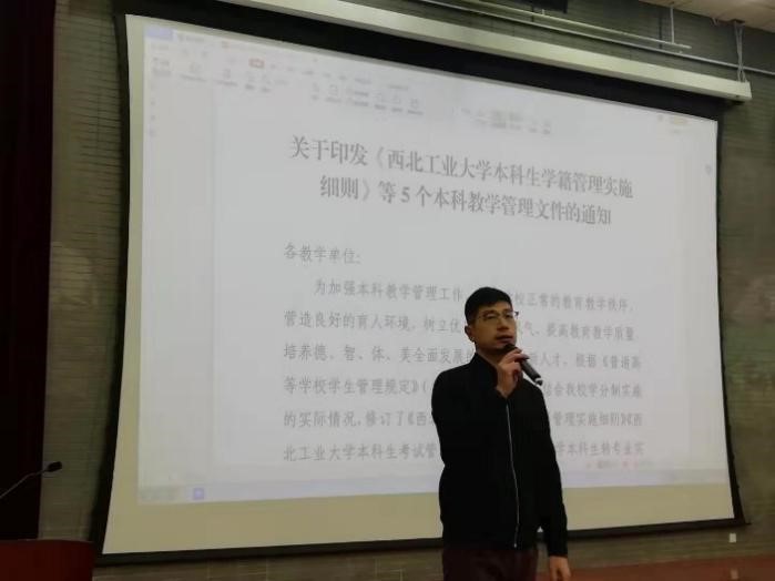 接着,张龙围绕考场秩序、违纪作弊处理、学业预警等方面的问题进行了宣讲。张龙一再强调,学生参加考试应遵守考场规则,诚信考试,服从监考老师的安排,共同维护考场秩序,营造良好的考试氛围。张龙指出了考试中容易出现的问题,列举了一些考试违纪作弊的典型案例,希望在座的同学引以为戒,避免再犯类似的错误。此外,张龙着重强调了学生诚信考试等相关事宜,将考场规则以及考试违纪、作弊处理的有关规定为同学们做了详细解读,希望同学们诚信考试、切实履行承诺,共同构建和谐的校园学习氛围。