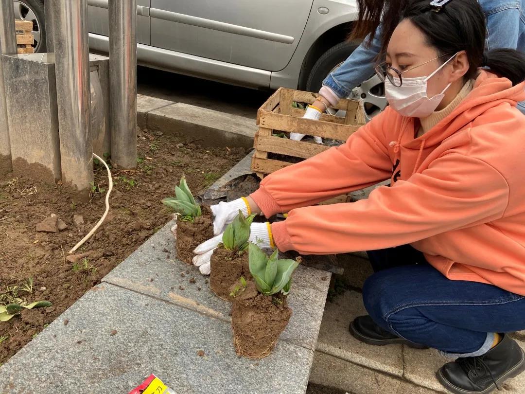 万木吐绿,万象更新。在第43个植树节即将来临之际,为践行习近平总书记关于生态文明建设系列重要论述的要求,激励海院学子积极投身生态文明实践,深入实施“美丽中国·青春行动”,买球体育官方网站于3月11日上午8:30,在友谊校区新图书馆门前花坛组织郁金香等花卉种植志愿服务活动。本次花卉种植活动是后勤产业集团规划的学校迎接十四运校园美化增绿添彩工程的一部分,买球体育官方网站响应校团委学雷锋月活动的号召,组织同学积极投身于志愿服务工作中,为学校贡献自己的一份力量。