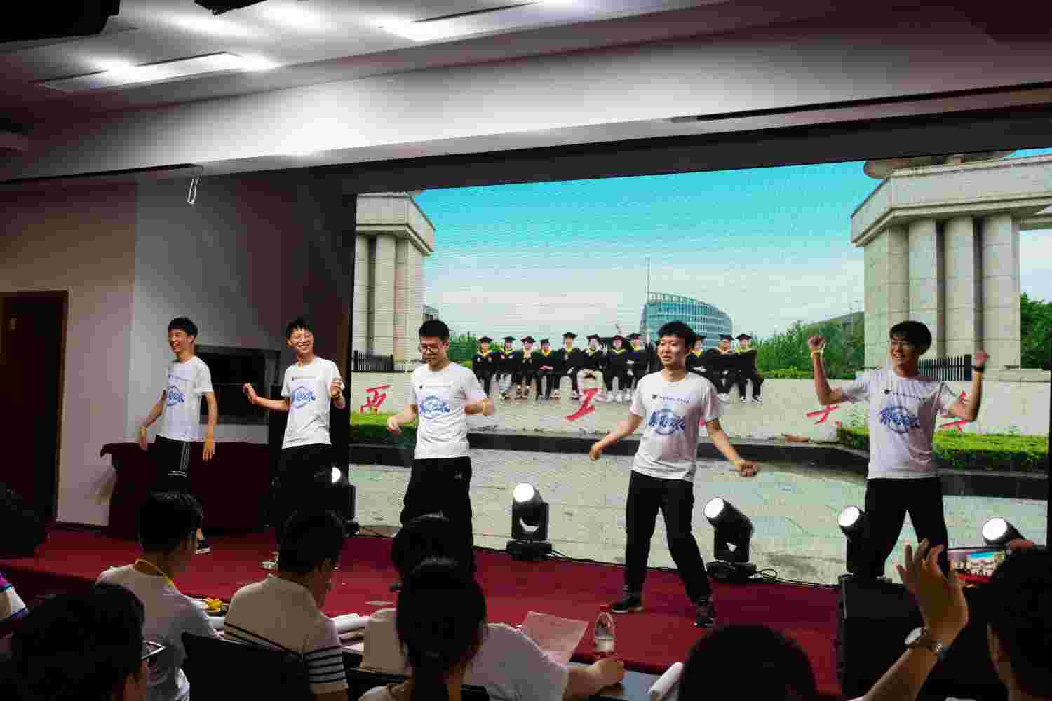 晚上7点,学院在东配楼举办了2021届毕业晚会,随着暖场毕业视频上一张张承载着同学们学习生活点滴的照片,晚会拉开了序幕。
