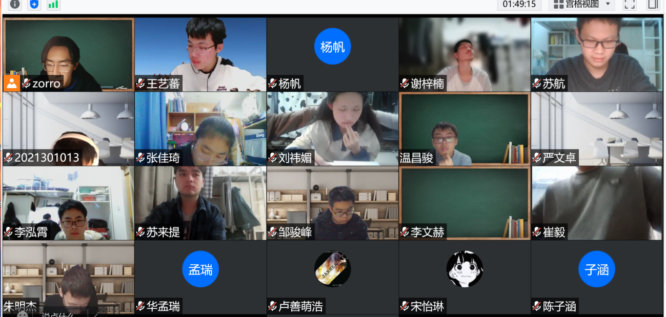 2022年1月2日,新年伊始,为了帮助大家检测近期在宿舍学习的成果,21级本科生辅导员杜朝辉组织同学们进行微积分课程的线上期末模拟考试,由年级大学习委员濮春俊同学拟写试题,买球体育官方网站2021级全体同学参与线上考试。考试于晚上8:30开始,试题以电子版呈现给同学们,所有同学打开腾讯会议摄像头,全程公开考试,并由各班班主任线上监考,学院部分领导和杜朝辉巡查监考。