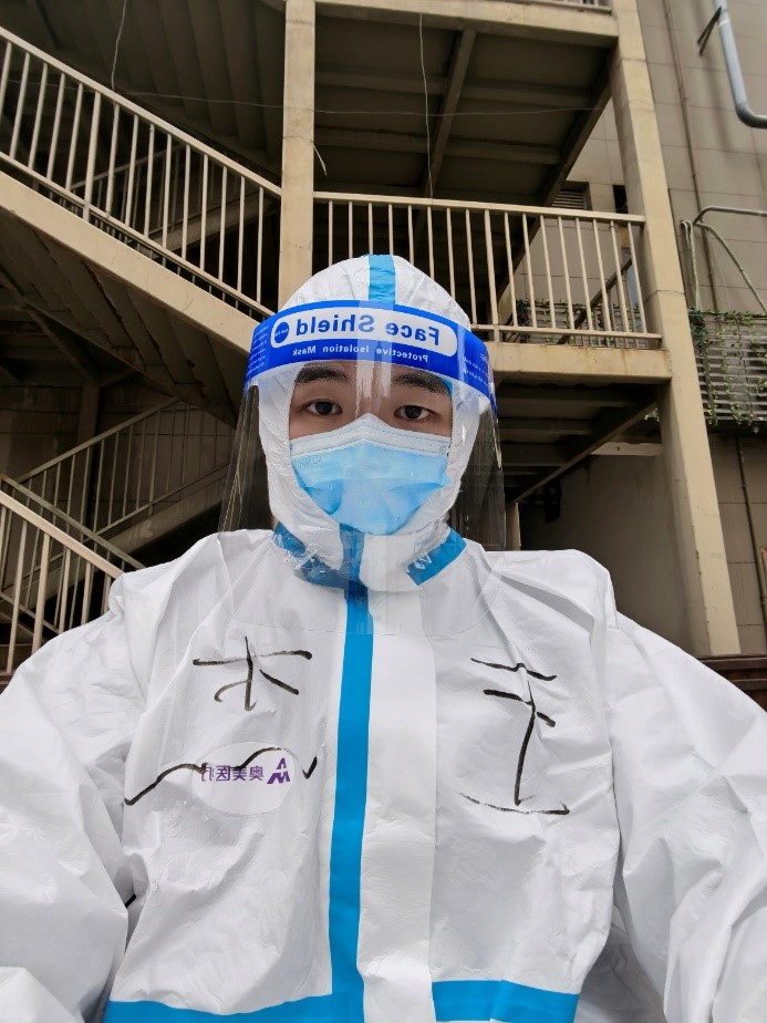 社区志愿者王杰:作为一名不在学校的大四学生,我不认为自己可以在这样的大事面前袖手旁观。作为一名群众,我应该积极向党员看齐。因此经过报名培训选拔,我也成为了一名社区防疫志愿者。在工作中看到他们对于防护服上写的“西工大”流露出的欣慰,我认为我做的一切都是值得的。
