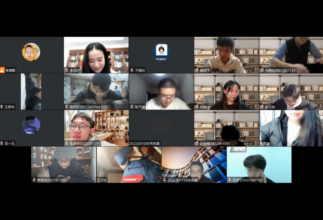“云端自习室”学辅活动从农历正月十五号开始,每日自习时间由各小班自行组织。参与自习的同学需每日在规定时间内进入腾讯会议室进行自习打卡。工作人员记录了同学们悬梁刺股、挑灯夜读的日常。在每个点亮读书灯的夜晚,他们都身披月光,在知识的海洋中遨游。让我们一起来看看他们努力的样子吧!