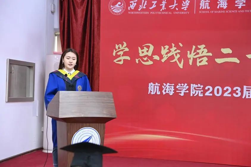 静下心来,这里还有学生代表的真情流露。典礼进行第四项,学生代表周笑仪发言,周同学回顾了自己在工大学习生活的点点滴滴,向培养自己的老师、学校表示诚挚的感谢,“今天,落幕的只是我们的研究生生活,而不是我们依然有着千万种可能的人生。”祝贺学院发展越来越好,学校发展更上一层楼。