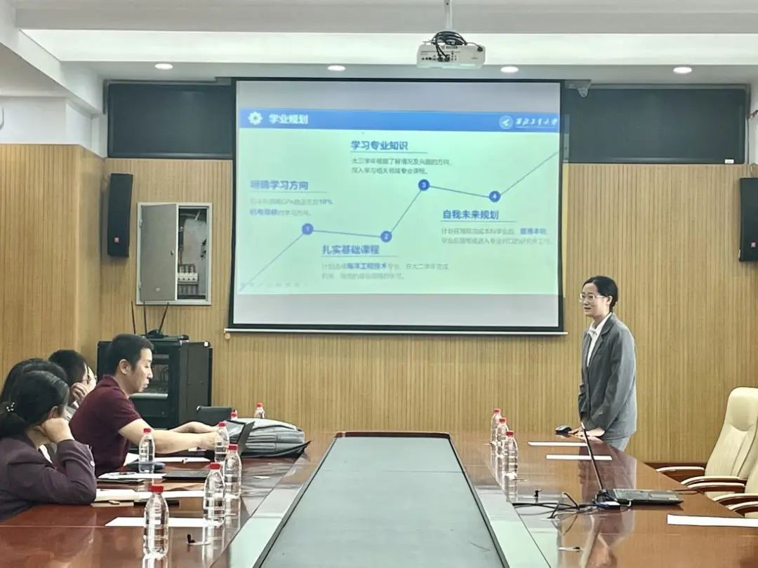 会议伊始,买球体育官方网站2022级黄震中海洋班班主任杨占龙详述了黄震中海洋班的发展近况与选拔目的,特别介绍了黄震中海洋班机电融合、本硕衔接、奖惩有方的特色优势。例如,买球体育官方网站特设5000元专项奖学金来支持黄震中海洋班学员的学习生活,并实施两次学业预警(课程不及格现象、班级位比后20%、年级位比后50%)的淘汰机制。