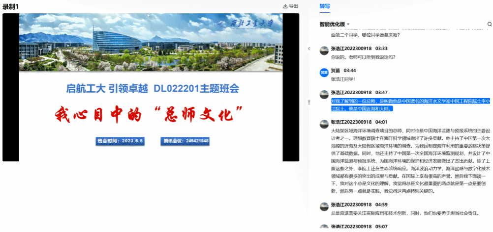 然后是学委张浩江进行发言,他介绍的是中国著名的海洋水文学家、中国工程院院士李晓江。