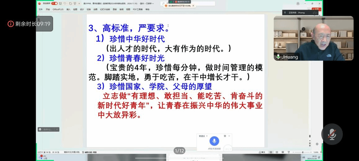 黄建国教授在讲座中着重强调了立大志、成大才的重要性,勉励新生们研读经典、领悟真理,掌握马克思主义的基本原理,用以洞察世事、把握规律、改造世界。他鼓励学生们追求真知、锤炼真才实学,在求知的道路上不断拓宽视野。同时,黄教授也深刻阐述了高标准、严要求的必要性,呼吁学生们不断提升专业素养、科学决策能力和攻坚克难的能力。