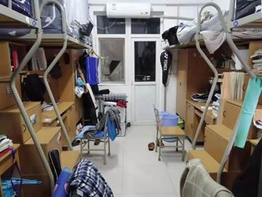 检查发现,大部分宿舍内务情况良好,学习、文化氛围浓厚,宿舍成员团结友爱;但仍有少部分宿舍杂物过多,未及时通风透气,室内存在异味;个别宿舍出现空调插座松落,电线外露等安全隐患,未发现大功率用电器。