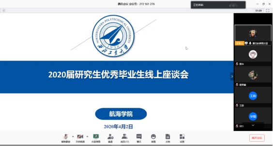 4月2日下午,买球体育官方网站2020届硕士研究生座谈会在线上举行,学院党委书记孙华强、副书记王银涛、副院长崔荣鑫、院长助理张龙、F1研究生辅导员廉杰以及校院两级全体优秀毕业生出席本次会议,会议由王银涛副书记主持。