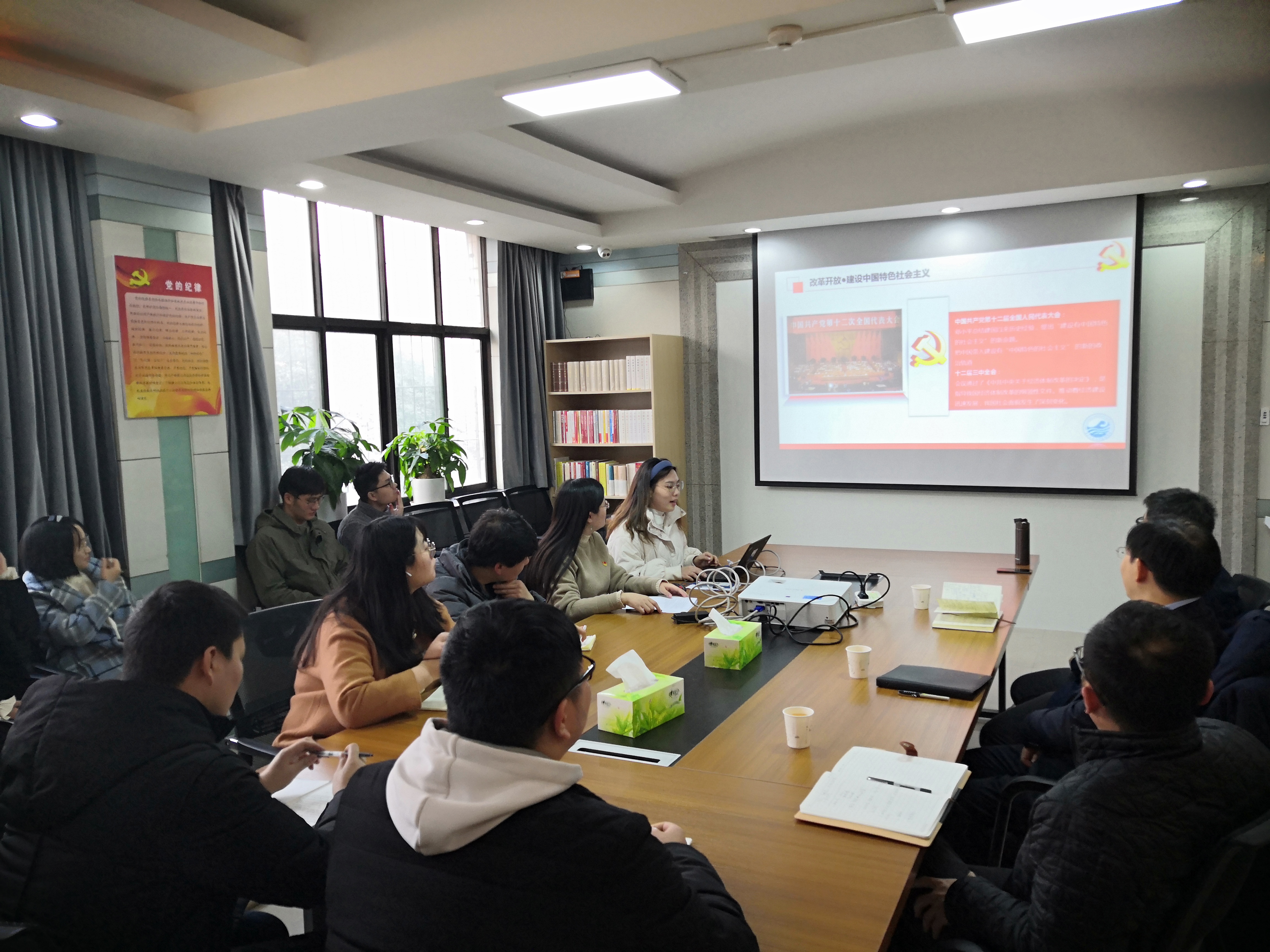 本次党日活动主题为“以史为鉴,探索未来强国之路—学习党史”。首先,党支部副书记杜诗慧同志带领大家一同学习了微党课。本次微党课梳理了我党发展历史的三个阶段,在回顾我党发展历史的同时,启发党员们思考,面对“两个一百年”奋斗目标交汇的关键时期,我们应如何面对机遇、探索强国之路。