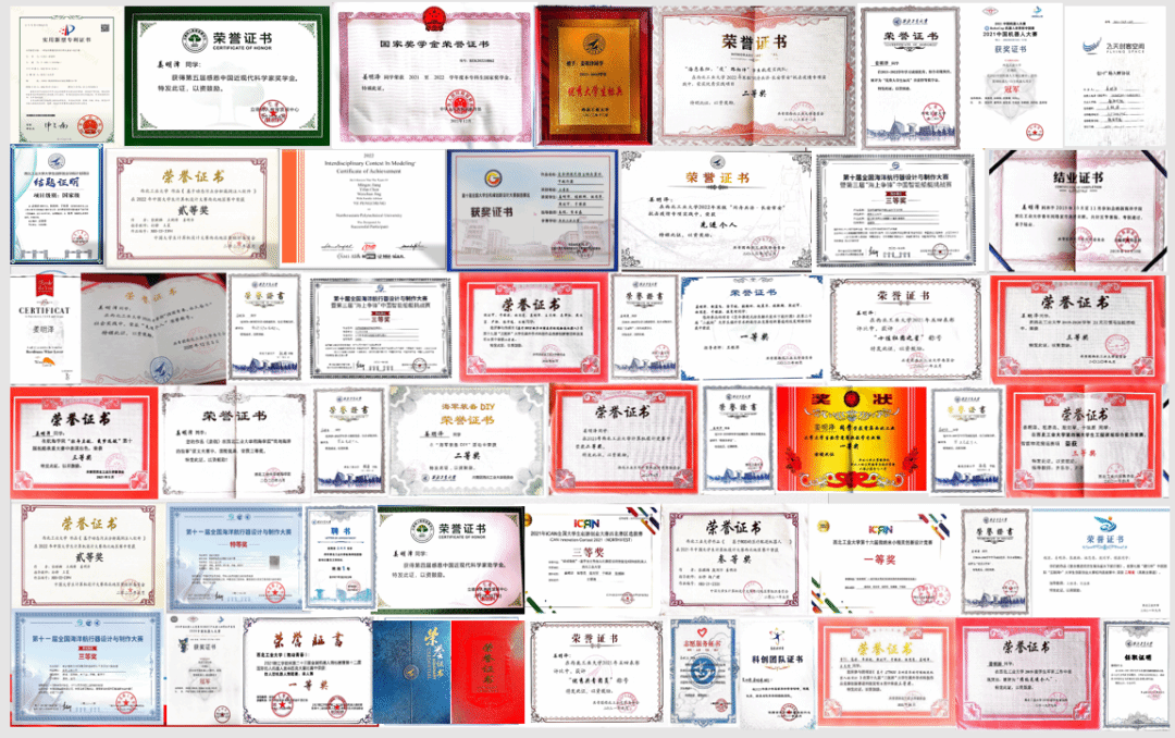 在学习方面,大三学年学业成绩G1:97.55分,综合成绩学院第一。本科期间总计修读200.5学分课程,修读专业课程超出培养计划要求。在本专业课程之外拓展学习了很多其他专业的核心课程,并取得优秀成绩,丰富自己的知识储备,最终形成了适合自己发展的学科方向培养体系,并获优秀大学生标兵与国家奖学金荣誉。在学习中注重理论与实践相结合,运用所学知识参与科研竞赛项目。