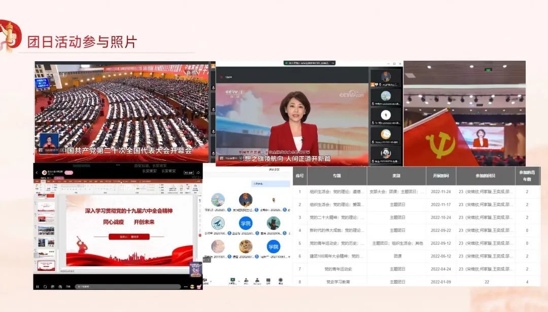 会上,学院7名大班团支部书记依次开展现场或线上述职,围绕团支部担负直接教育团员、管理团员、监督团员和组织青年、宣传青年、凝聚青年、服务青年的职责,从大班团支部概况、工作开展情况、存在问题及整改措施等方面汇报2022年度工作及未来工作计划,着重对深入学习贯彻党的二十大精神、共青团推优入党等重点工作的落实成效进行汇报。评委根据述职内容进行打分,并为优秀大班团支部书记颁发证书。