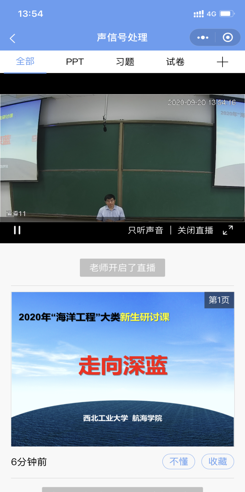 近日,买球体育官方网站面向海洋工程大类学生开设的“走向深蓝”特色研讨课程再次启航。9月20日下午,在长安校区教西D101教室买球体育官方网站2020年“海洋工程”大类新生研讨课开讲,副院长曾向阳教授为海院学子带来了本学期“走向深蓝”第一讲,课程全程线上线下同步进行,学生可以使用雨课堂同时线上收看。