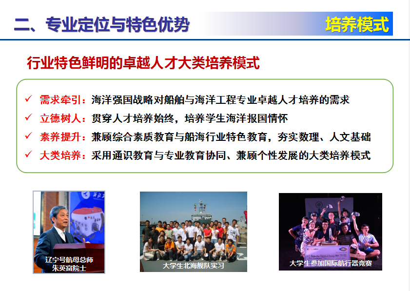 党老师说到买球体育官方网站船舶与海洋工程专业是首批陕西省一流本科专业,拥有国家级教学团队、全国教育先进集体、全国高校黄大年式教师团队,教学实力雄厚,拥有特色鲜明的人才培养模式,使用创新教育教学手段,激发学生自主学习动力,以实践育人、科教协同育人,实施全周期工程实践教育,以国际学术交流、交换培养、多元文化交融、联合主办国际会议等多元化英文授课、多形式联合培养,稳步提高国际化水平。