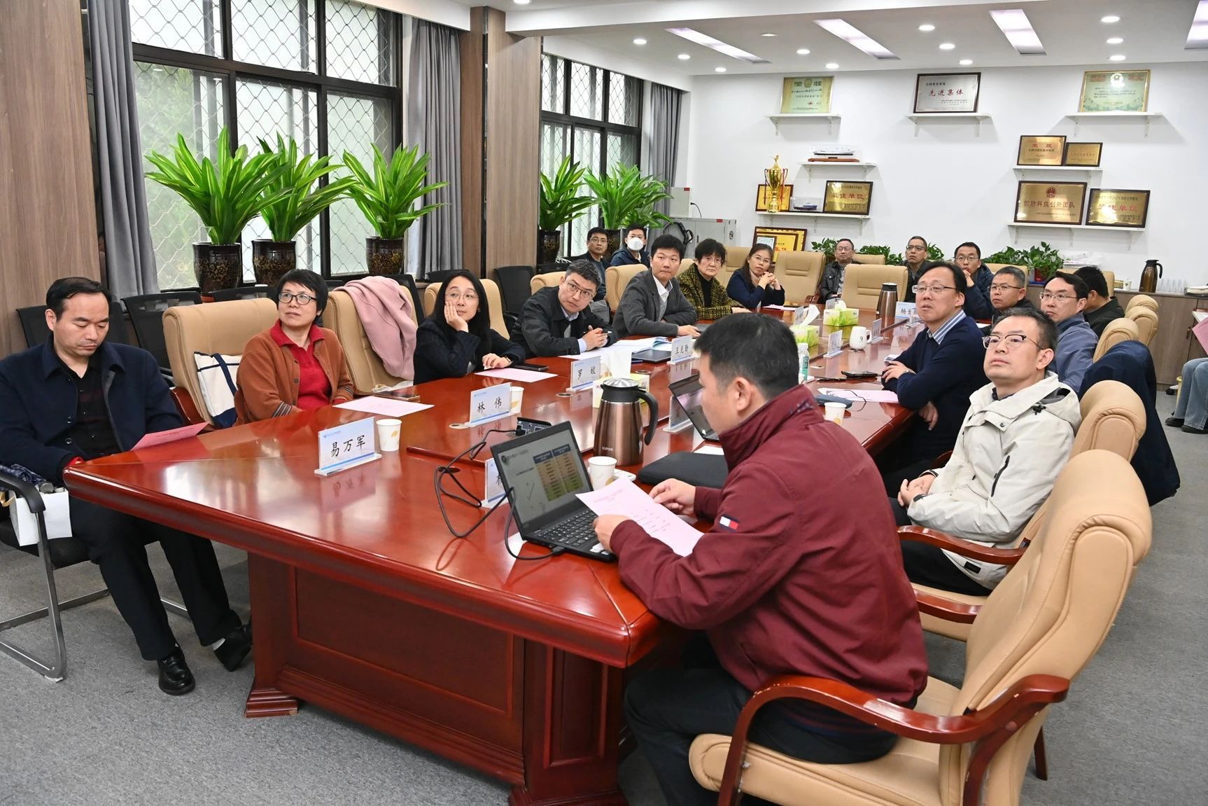 潘光对各位招生组组长的到来表示热烈的欢迎,随后由湖南招生组组长杨占龙、广西招生组组长杜向党对2024年度招生工作进行详细汇报。