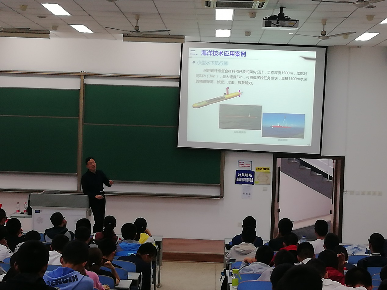 潘院长结合自身的工作学习经验从国家海洋战略、海洋技术应用、海洋技术总体概述讲到海洋技术发展蓝图,为海院新生们展开了一幅关于海洋技术的壮丽的画卷。
