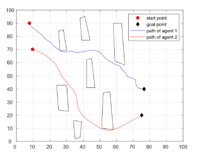 基于演化算法的移动机器人路径规划仿真图