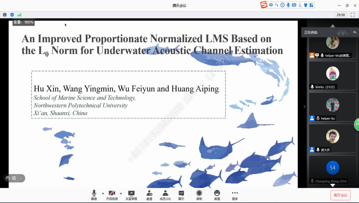 2020年,买球体育官方网站克服国际疫情的严重影响,积极推动线上国际交流工作开展。在研究生赴国(境)外交流学习专项资金资助下,共组织36名学生参加了IEEE海洋学会议、IEEE进化计算会议、国际噪声控制工程大会、IEEE国际信号处理、通信和计算会议等高水平国际学术会议并做口头学术报告,充分展示海院学子扎实的科研能力、开阔的国际视野与关注学术前沿问题和国际最新研究成果的科研意识。