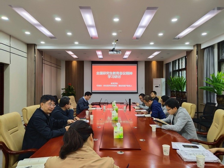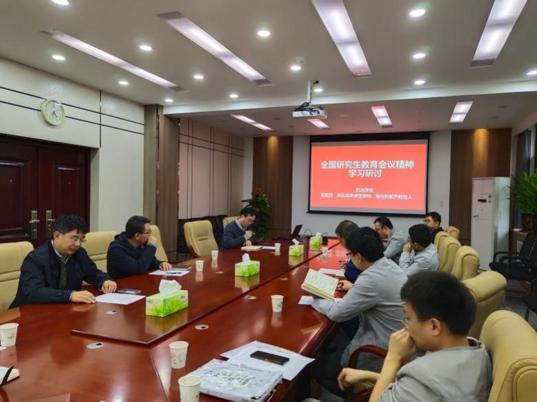 10月10日下午,买球体育官方网站在201会议室召开了落实全国研究生教育会议精神研讨会。会议由杨坤德副院长主持,产教融合先进典型陈克安等教授、学科副主任王海涛、汪勇,各团队代表以及学院研究生工作办公室秘书等10余人参加了会议。