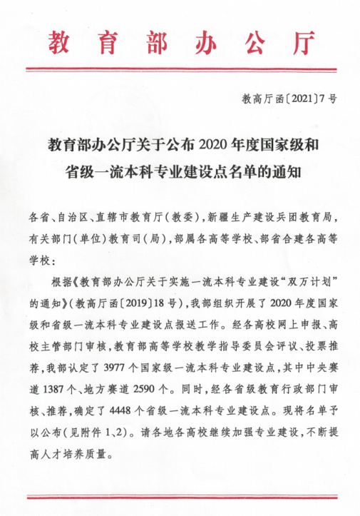 近日,教育部办公厅下发《教育部办公厅关于公布2020年度国家级和省级一流本科专业建设点名单的通知》(教高厅函〔2021〕7号),公布2020年度国家级和省级一流本科专业建设点名单,买球体育官网船舶与海洋工程专业获批“2020年度国家级一流本科专业建设点”。