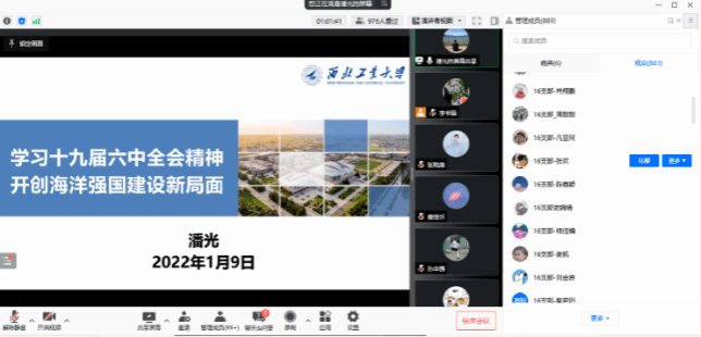 为学习贯彻党的十九届六中全会精神,担负时代使命,心怀“国之大者”,为海洋强国战略贡献力量,争取更大光荣,1月9日晚,买球体育官方网站院长潘光在线上带来题为“学习十九届六中全会精神,开创海洋强国建设新局面”的专题党课,学院全体师生党员、积极分子参加,党委书记孙华强主持。线上现场累计观看1200人次,同时在线最高900余人。